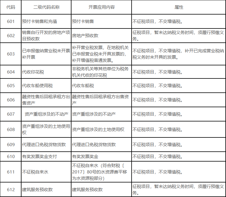 后续发票开票系统中不征税发票代码陆续增添项目,截止目前代码增加了604至612,不征税发具的开具模式,打破了不征税项目开收据不开发票的惯性思维,对于特定的不征税项目应按规定开具不征税发票。