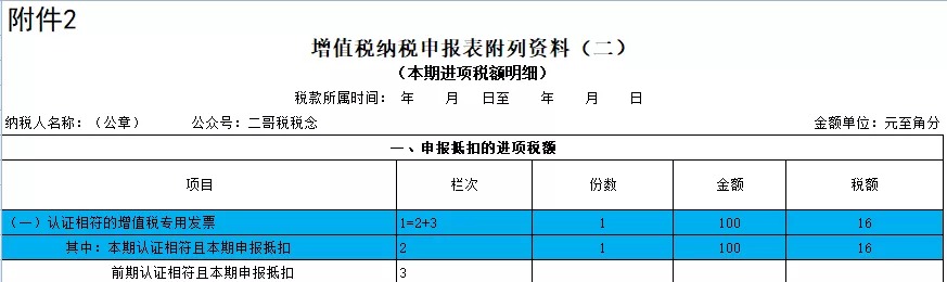 比如:二哥税税念公司2019年4月5日才收到供应商2019年3月20日开具的增值税专用发票一张,发票金额100,税率16%,税额16。