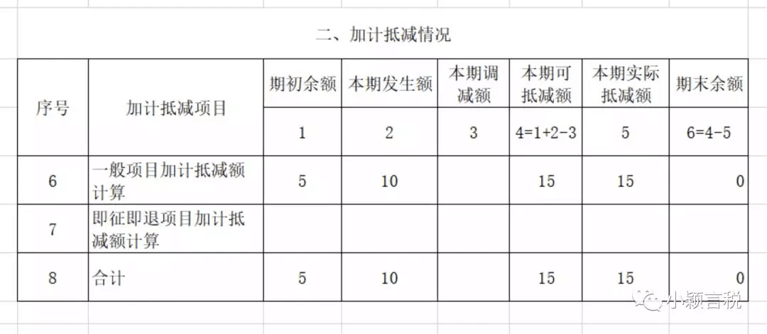 (二)当期可抵减加计抵减额=上期末加计抵减额余额+当期计提加计抵减额-当期调减加计抵减额=5+10=15(万元)