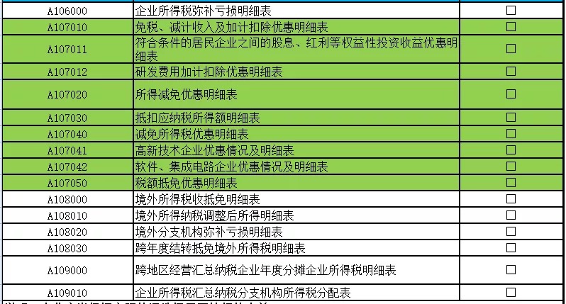 很简单,我就勾选标黄色的 A101010\A102010\A104000表就行了,其他表我就不用填写了。